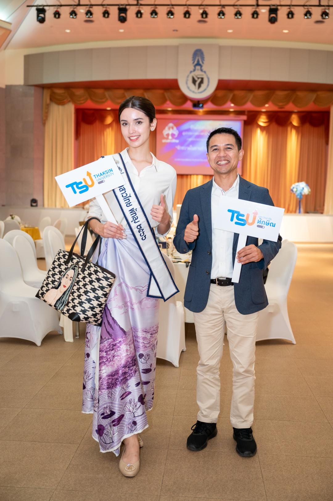 เมื่อวันจันทร์ที่ 6 มีนาคม 2566 เวลา 18.30-21.00 น.  คณะผู้บริหารมหาวิทยาลัยทักษิณ นำโดยรองศาสตราจารย์ ดร.ณฐพงศ์ จิตรนิรัตน์อธิการบดี พร้อมทีมผู้บริหาร ร่วมต้อนรับผู้เข้าประกวดนางสาวไทย 2566 ในโอกาสเดินทางมาทำกิจกรรม ณ หอประชุมเฉลิมพระเกียรติ มหาวิทยาลัยทักษิณ วิทยาเขตพัทลุง และเข้าพัก ณ ทักษิณาคาร มหาวิทยาลัยทักษิณ วิทยาเขตพัทลุง