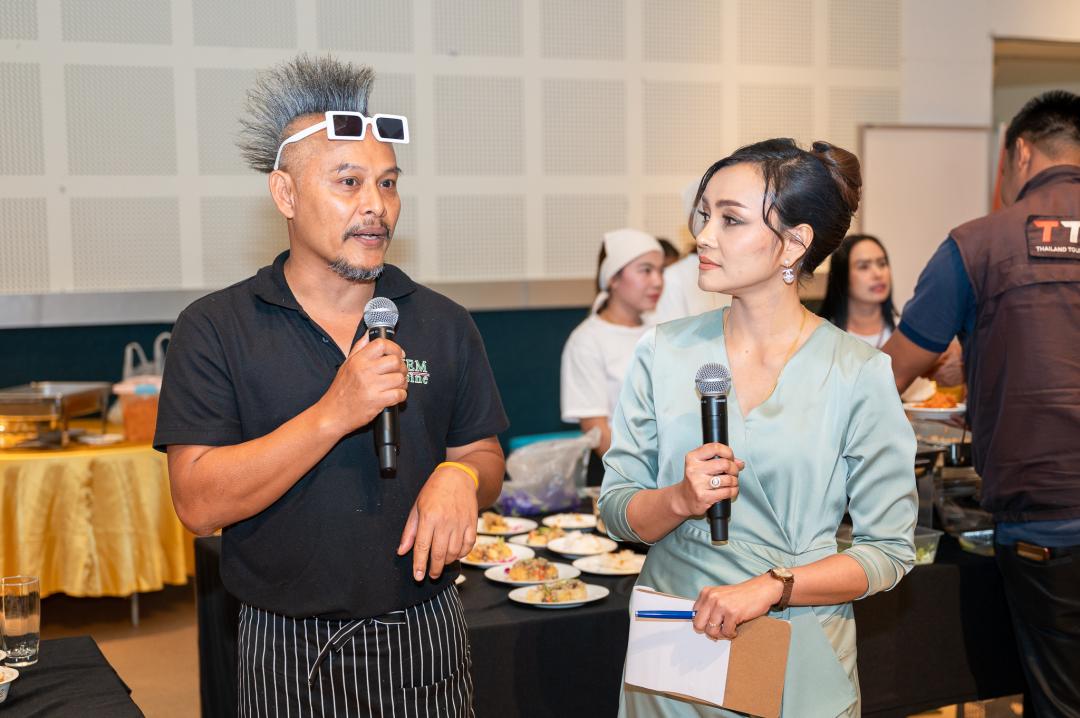 สำหรับการเลี้ยงรับรองผู้เข้าประกวดฯ อาจารย์ ดร.นิชากรณ์ พันธ์คง ผู้อํานวยการสำนักส่งเสริมการบริการวิชาการและภูมิปัญญาชุมชน มหาวิทยาลัยทักษิณ ได้แนะนําเมนูอาหารพื้นถิ่นพัทลุง “จักรวาลในจานข้าวของพัทลุง"  ซึ่งมีผู้ประกอบการมาให้บริการจัดเลี้ยง 3  ร้าน ได้แก่ 1)ร้านอาหารดอกพะยอม ทักษิณาคาร 2)สมาคมการท่องเที่ยว จังหวัดพัทลุง โดยหลาดริมชล 3)ร้านอรรถรส ซึ่งผู้เข้าประกวดและคณะ ได้ร่วมกิจกรรม workshop ประกอบด้วย ขนมปากหม้อจากสาคูต้นพัทลุง โดยเครือข่ายชุมชนของสำนักส่งเสริมการบริการวิชาการและภูมิปัญญาชุมชน และการเพ้นท์กระเป๋ากระจูด โดยร้านกระจูดวรรณี