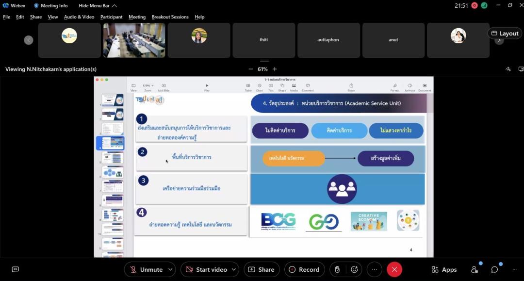 16 มีนาคม 2566 อาจารย์ ดร.นิจกานต์ หนูอุไร รองผู้อำนวยการสำนักส่งเสริมการบริการวิชาการและภูมิปัญญาชุมชน ได้เชิญผู้บริหารและคณาจารย์ร่วมประชุมรับฟังการชี้แจง “การขอทุนสนับสนุนจัดตั้งหน่วยบริการวิชาการและทุนบริการวิชาการบูรณาการนวัตกรรมสังคมเพื่อการใช้ประโยชน์ในเชิงพื้นที่” เพื่อความเข้าใจที่ถูกต้องในการขอทุนสนับสนุนจัดตั้งหน่วยบริการวิชาการและทุนบริการวิชาการบูรณาการนวัตกรรมสังคมเพื่อการใช้ประโยชน์ในเชิงพื้นที่  ณ ห้องประชุม 18311 อาคาร 50 ปี มหาวิทยาลัยทักษิณ วิทยาเขตสงขลา และออนไลน์ผ่านระบบ Webex Meeting