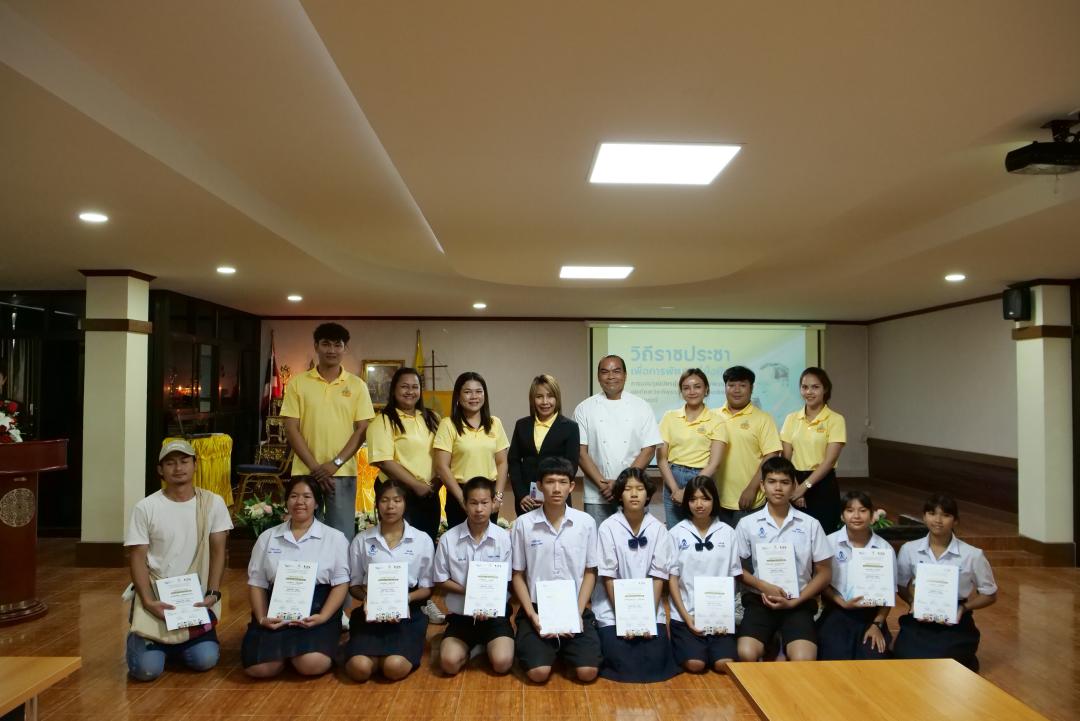 กิจกรรมการมอบประกาศนียบัตร “วิถีราชประชาเพื่อการพัฒนาที่ยั่งยืน” ให้แก่นักเรียนที่ผ่านการพัฒนาความรู้และทักษะวิชาชีพระยะสั้นหลักสูตรบาริสต้าและเบเกอรี ณ ห้องประชุมอินทนิล โรงเรียนราชประชานะเคราะห์ 47 จังหวัดเพชรบุรี