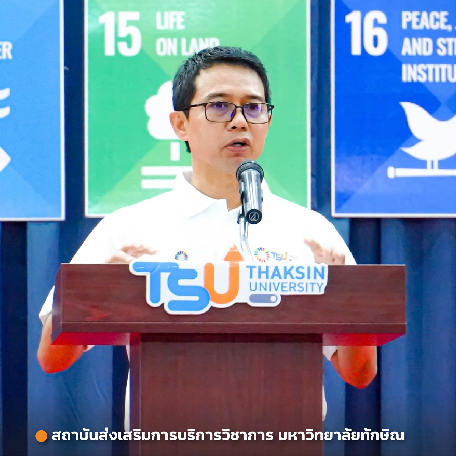 30 เมษายน 2567 อาจารย์ ดร.นิชากรณ์ พันธ์คง ผู้อำนวยการสถาบันส่งเสริมการบริการวิชาการ และบุคลากร เข้าร่วมโครงการ TSU-SDGs for Sustainability เปิดพื้นที่การเรียนรู้มหาวิทยาลัยนวัตกรรมสังคมเพื่อเป้าหมายการพัฒนาที่ยั่งยืน และร่วมประกาศเจตนารมณ์ในการขับเคลื่อนเป้าหมายการพัฒนาที่ยั่งยืน (SDGs)  ณ หอประชุมปาริชาต มหาวิทยาลัยทักษิณ วิทยาเขตสงขลา