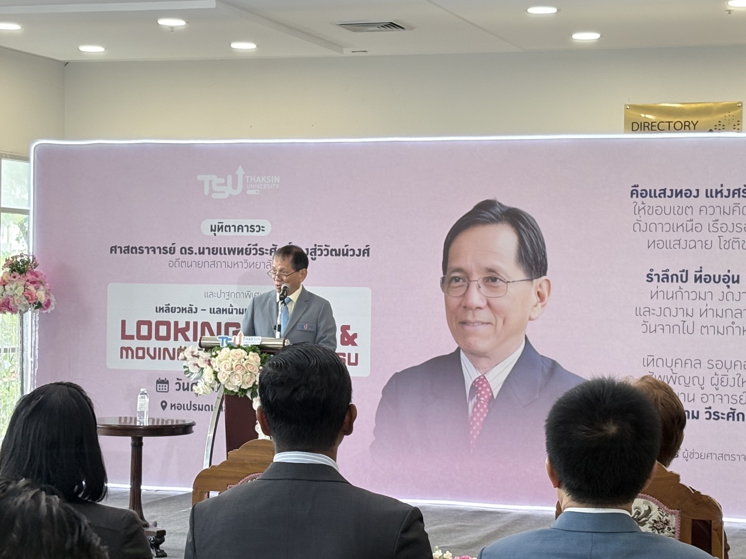 “เหลียวหลัง – แลหน้า มหาวิทยาลัยทักษิณ (Looking Back and Moving Forward for TSU)” โดย ศ.ดร.นพ.วีระศักดิ์ จงสู่วิวัฒน์วงศ์ ถ่ายทอดมุมมอง วิสัยทัศน์ และแนวทางการพัฒนาเพื่ออนาคตของมหาวิทยาลัยทักษิณในบริบทของการเปลี่ยนแปลงทางสังคมและการศึกษา