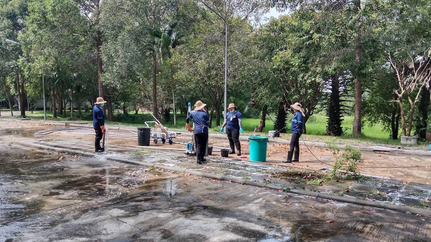 ดำเนินกิจกรรมปรับปรุงภูมิทัศน์และดูแลพื้นที่โดยรอบ ศาลาเกาะกลางน้ำ อย่างต่อเนื่อง