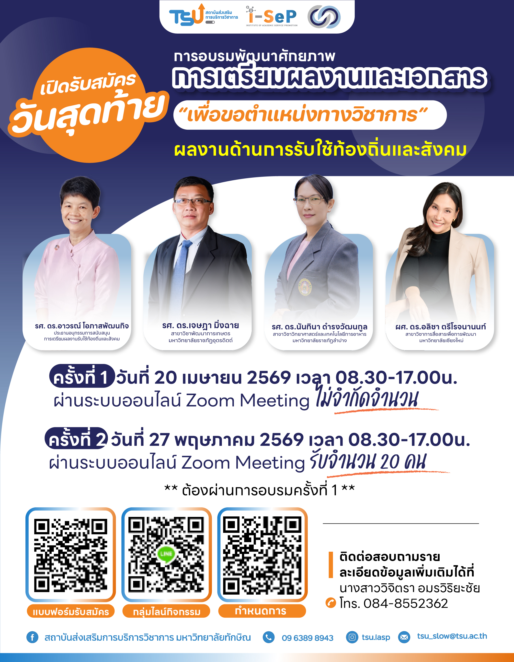โอกาสสุดท้าย! สสช. มหาวิทยาลัยทักษิณ เชิญชวนคณาจารย์สมัครร่วมอบรมเชิงลึก “การขอตำแหน่งทางวิชาการด้วยผลงานรับใช้สังคม