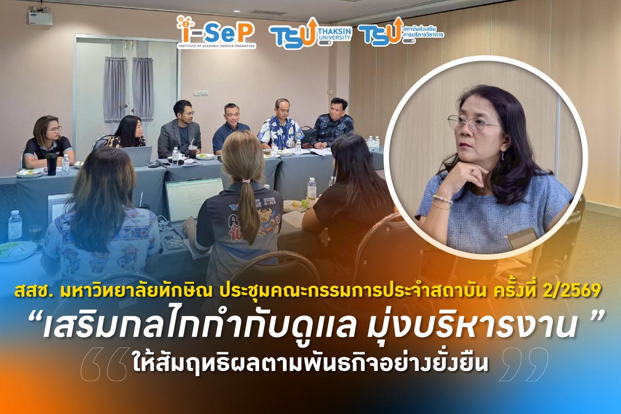 สสช. มหาวิทยาลัยทักษิณ เสริมทัพอาจารย์ ติวเข้มเทคนิคการขอตำแหน่งทางวิชาการด้วยผลงานรับใช้สังคม มุ่งยกระดับมาตรฐานวิชาการรับใช้ท้องถิ่นสู่ระดับสากล